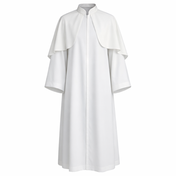 Elegant and spiritually inspired clergy apparel with cape, designed for church choirs, ministers, and special services. Crafted with premium fabrics for comfort, durability, and a majestic appearance.