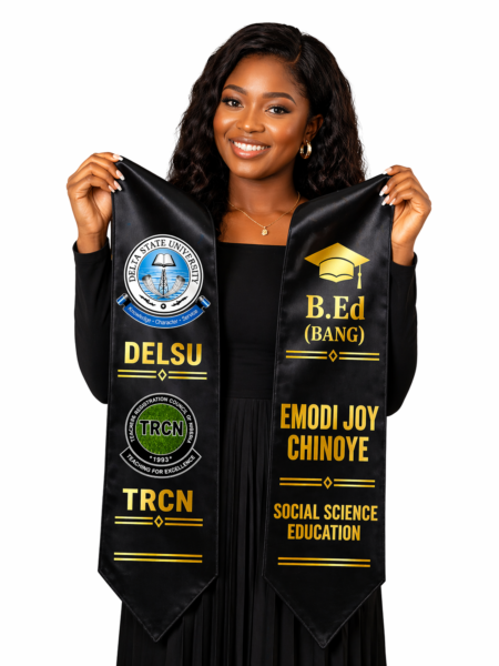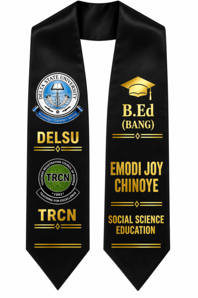 Whether you’re graduating from a university, college of education, or professional body like TRCN, this custom sash allows you to showcase your identity with elegance and pride.