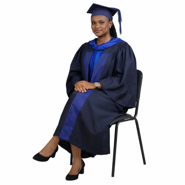 At Floremz Online Store Limited, we specialize in producing premium graduation gowns that not only meet academic standards but also enhance your overall appearance on your special day. This gown is designed with a rich navy blue fabric complemented by a bold blue front panel, giving it a distinguished and polished look suitable for all convocation ceremonies.